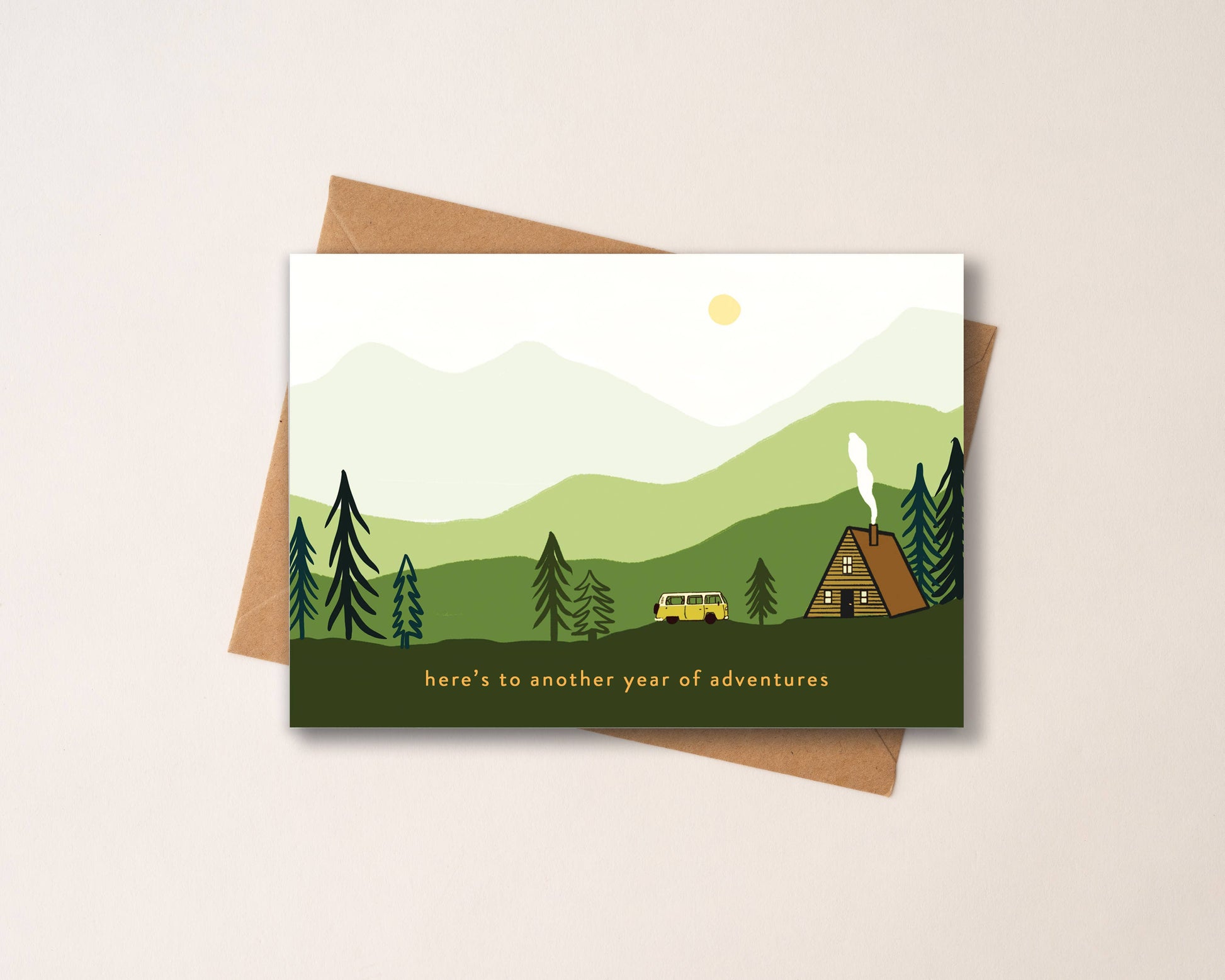 Greeting reads "Here's to Another Year of Adventures"
